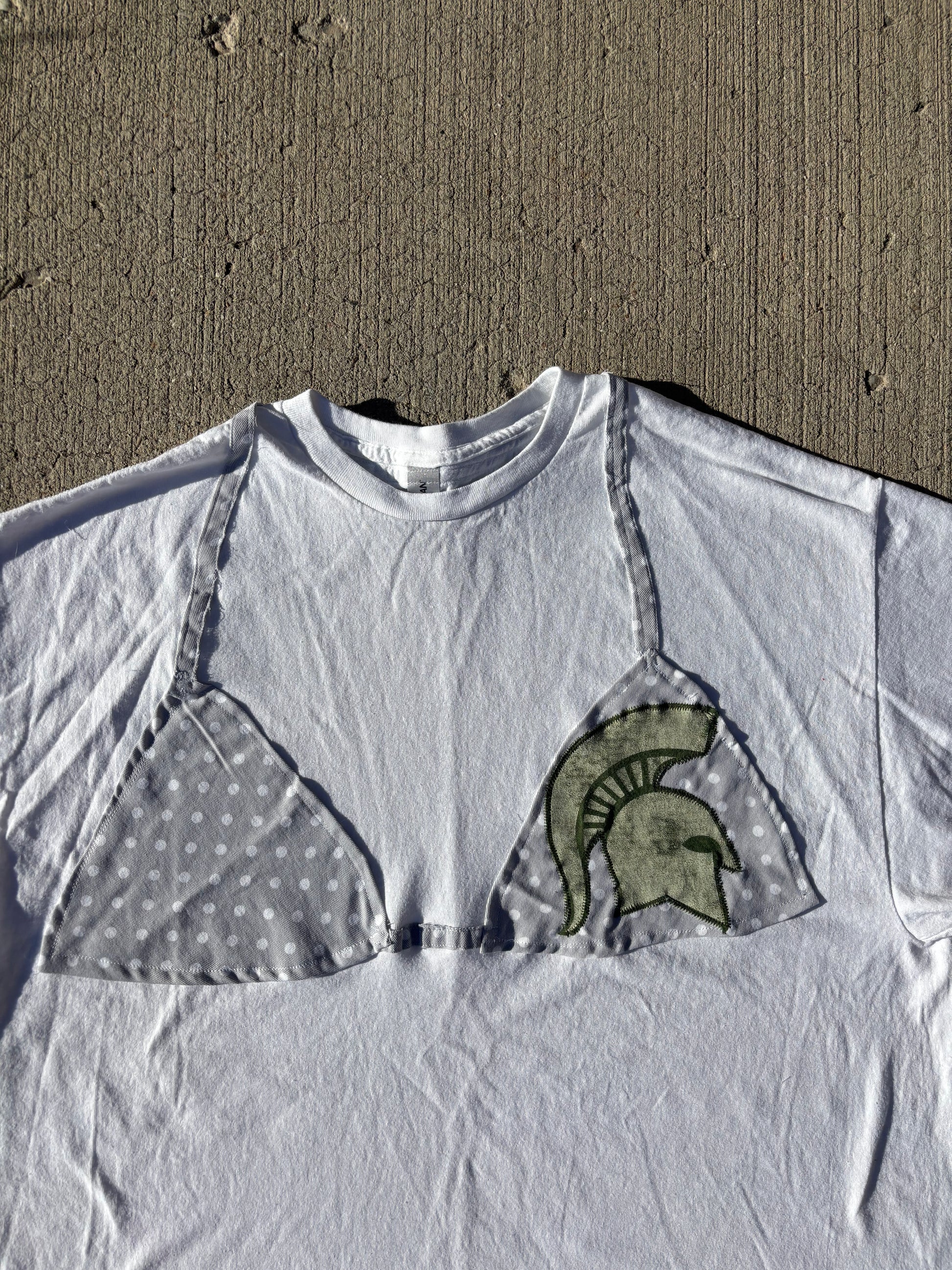 Product: Sustainable tailgate T made of recycled materials. Hand sewn!