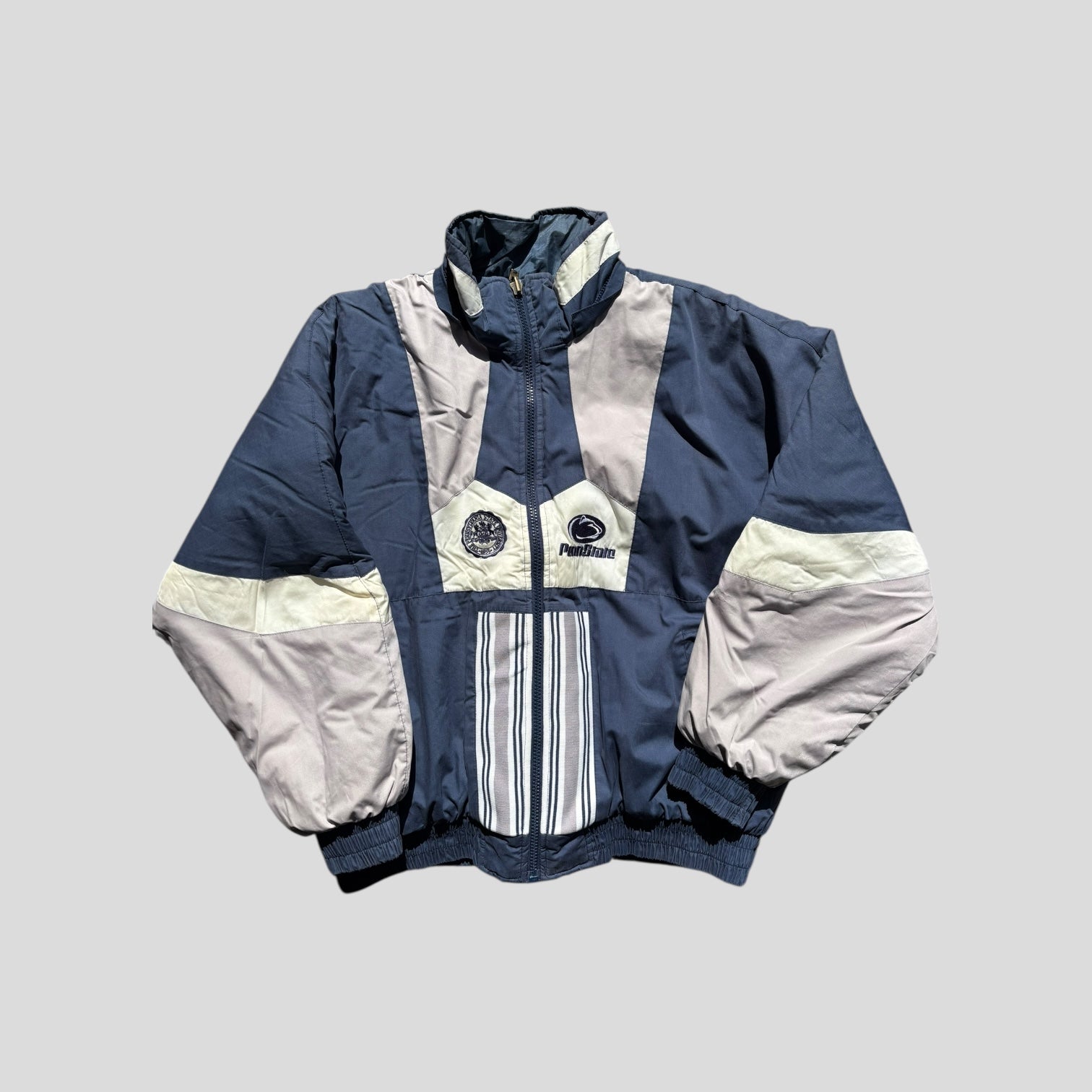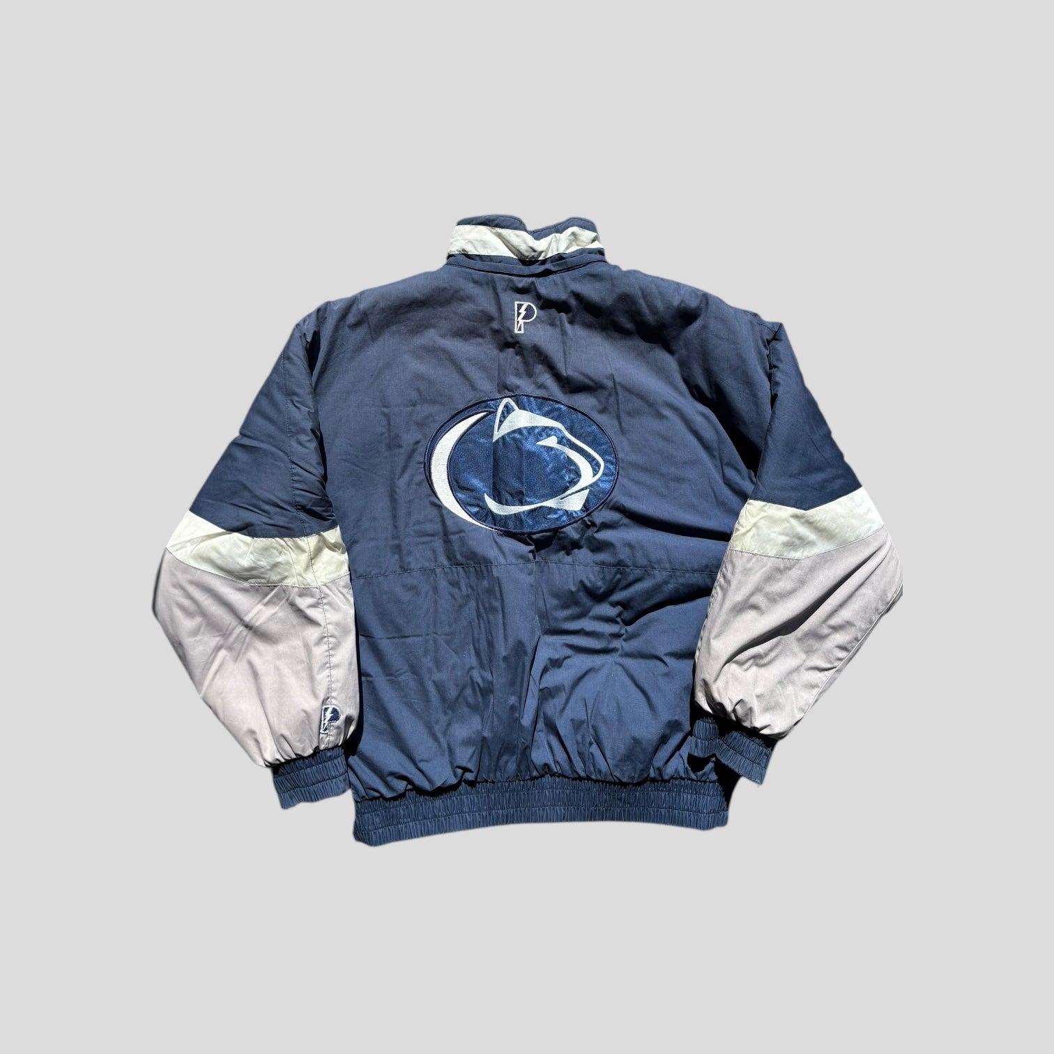 Product: Thick reversible puffer w/ tuckable collar. Inside not shown, but is all navy with Penn State embroidered on back.